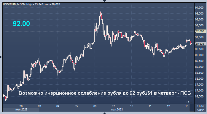 "Несмотря на сохраняющийся рост цен на энергоносители, курс доллара не может развить снижение, при этом торговая активность остается пониженной. Мы склонны полагать, что поддержку американской валюте оказывают сужение сальдо торгового баланса, а также отрицательное сальдо текущего счета. Дополнительным фактором сужения предложения иностранной валюты на рынке выступило снижение ежедневных объемов продаж Минфином РФ. На утро четверга рубль слабеет к ключевым валютам на Московской бирже. Не исключаем, что доллар инерционно может приблизиться к отметке 92 руб./$1 в ходе торговой сессии, одна мы продолжаем ориентироваться на восстановление позиций и возвращение пары под отметку 90 руб./$1", - считает аналитик Промсвязьбанка (ПСБ) Егор Жильников.