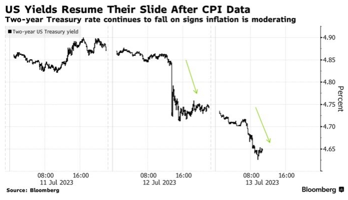 Доходность США возобновила падение после данных по индексу потребительских цен | Двухлетняя доходность трежерис продолжает падать на фоне признаков замедления инфляции
