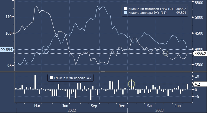Алюминий подорожал более чем на 6,3% на этой неделе, в то время как медь подорожала на 3,3%, поскольку курс доллара (DXY) упал до самого низкого уровня с апреля 2022 года, что сделало товары дешевле для зарубежных покупателей. Индекс LMEX, который отслеживает шесть основных цветных металлов (медь, алюминий, свинец, олово, цинк, никель), вырос на 4,2% по состоянию на четверг, что стало лучшей неделей с января.