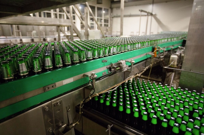 Бутылки пива Carlsberg на производственной линии предприятия в Санкт-Петербурге, Россия.Источник: Блумберг.