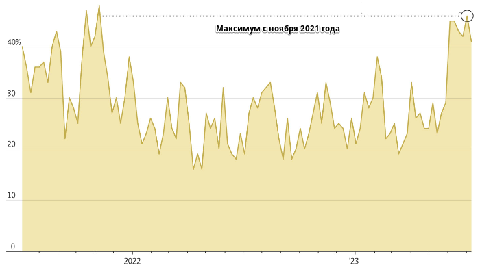 Розничные трейдеры идут ва-банк. Согласно опросам Американской ассоциации индивидуальных инвесторов, бычьи настроения — в виде ожиданий относительно роста акций в ближайшие шесть месяцев — достигли в этом месяце самого высокого уровня с 2021 года.