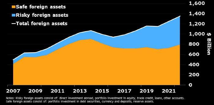 Исторически Королевство инвестировало полученные нефтедоллары в два типа активов: «надежные» (госдолг США и кэш) и «рискованные» (акции зарубежных компаний). В период нефтяного бума 2005–2014 годов Саудовская Аравия накопила свыше триллиона нефтедолларов, 60% которых инвестировала в надежные активы. В 2017–2022 годы PIF (Фонд национального благосостояния Саудовской Аравии) заработал на этих и других вложениях около $300 млрд, при этом соотношение долей надежных и рискованных активов в нем увеличилось в пользу последних.