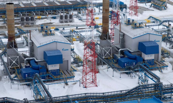 Газоперерабатывающий комплекс, эксплуатируемый компанией "Газпром", на Бованенковском газовом месторождении на арктическом полуострове Ямал, Россия, 21 мая 2019 года. Снимок сделан 21 мая 2019 года. REUTERS/Максим Шеметов