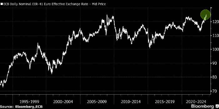 Номинальный эффективный курс евро. Данные: ЕЦБ, источник: Bloomberg