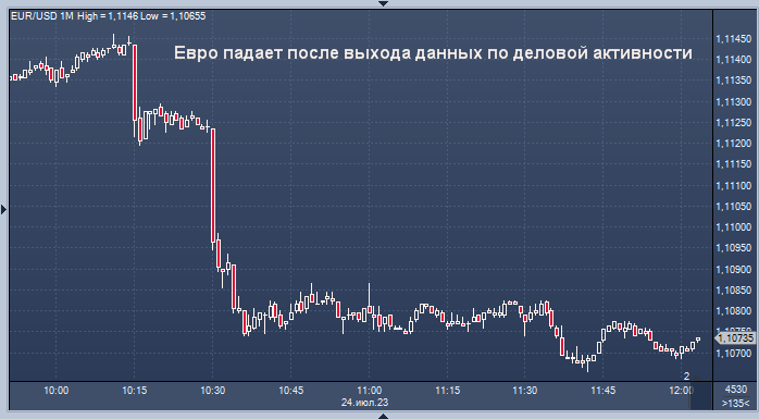 Единая европейская валюта упала на 0,43% до 1,1076 доллара, снизившись после спокойной азиатской сессии после того, как данные PMI показали сокращение деловой активности во Франции и Германии.