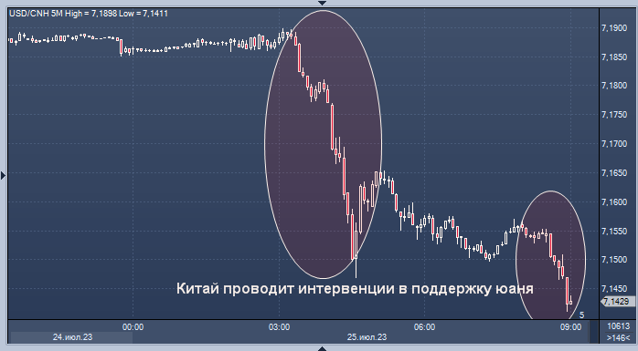 Его оффшорный аналог последовал тенденции укрепления и вырос до недельного максимума 7,1475, прежде чем в последний раз торговался на отметке 7,1542.