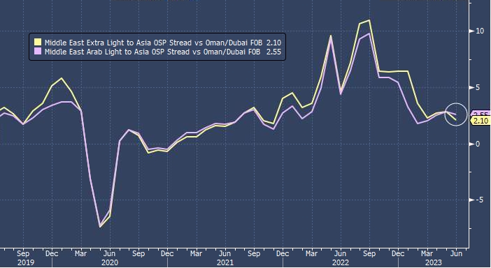 Рынок среднесернистой нефти, экспортируемой Саудовской Аравией, «невероятно узок», дубайские бенчмарки находятся в глубокой бэквордации, а официальные отпускные цены на Arab Extra Light (легкая нефть) ниже, чем на Arab Light, подчеркнули эксперты FGE.