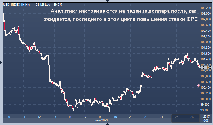 Ожидается, что Федеральный комитет по открытым рынкам повысит ставки на четверть пункта до диапазона от 5,25% до 5,5%, что является 11-м повышением с начала 2022 года. Решение будет опубликовано в 14:00 в Вашингтоне. Председатель Джером Пауэлл проведет пресс-конференцию через 30 минут.