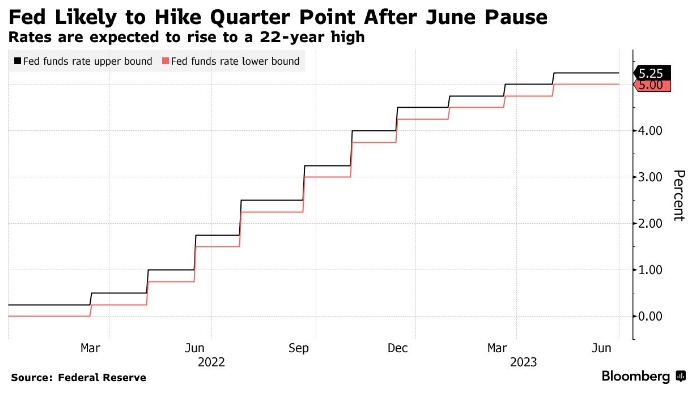 Повышение в июле последует за июньской паузой, которая была нужная, чтобы оценить замедление темпов экономического роста по мере того, как они приближаются к уровню ставки, который, как считается, является достаточно ограничительным, чтобы со временем вернуть инфляцию к целевому уровню в 2%. Тем не менее, Пауэлл и другие политики могут захотеть выглядеть более ястребино, чтобы избежать повторения роста цен.