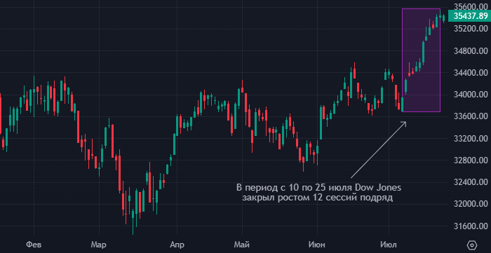 График Dow Jones Industrial Average интервалами 1 день
