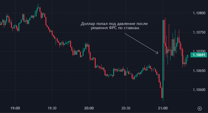 Рынок отреагировал на эту новость небольшим давлением на доллар. Вероятно, некоторые участники рынка опасались более жестких сигналов со стороны ФРС.