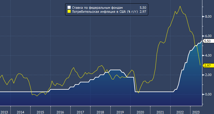 Комитет по операциям на открытом рынке ФРС (FOMC) повысил целевой диапазон ставки по федеральным фондам на 0,25% до 5,25%-5,50% (самый высокий уровень за 22 года), как и ожидалось. На предыдущем заседании в июне FOMC брал паузу в цикле повышения ставок.