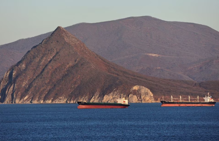 Сухогрузы стоят на якоре в бухте недалеко от портового города Находка, Россия, 4 декабря 2022 года. REUTERS/Татьяна Меэль