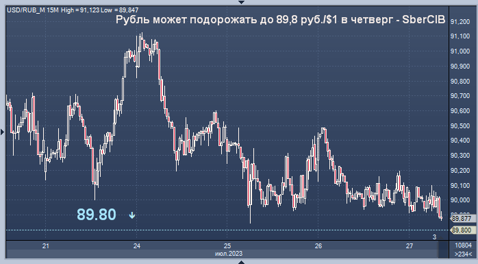 "Рубль в среду немного подорожал и закрепился около 90 руб./$1. Экспортёрам в пятницу предстоит выплатить основные налоги, поэтому укрепление рубля продолжается. Похожая ситуация наблюдалась и в конце апреля. Причём тогда за налоговыми выплатами последовало резкое укрепление рубля в первой половине мая. Возможно, что в четверг российская валюта подорожает примерно до 89,8 руб./$1", - полагают аналитики SberCIB Investment Research.