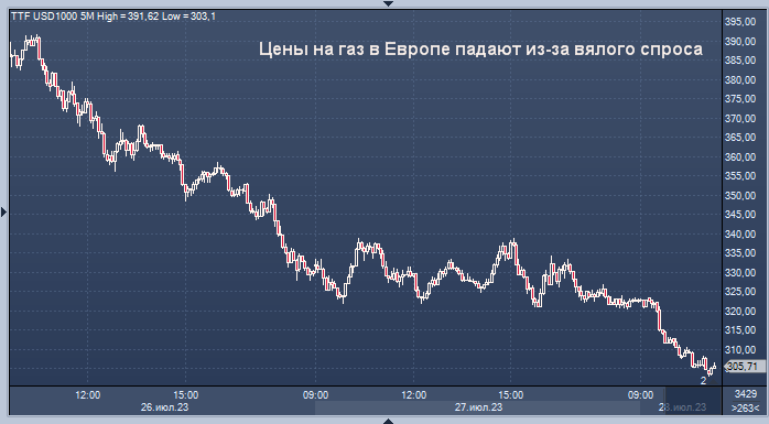 Голландские фьючерсы на ближайший месяц, европейский эталон газа, упали на 4,8% до 27,05 евро за мегаватт-час в 09:43 в Амстердаме. Эквивалентный контракт в Великобритании также упал.