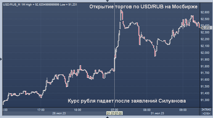 Курс доллара к рублю утром в понедельник перевалил за отметку в 92 за доллар, и, похоже, не собирается останавливаться. Помимо направляющих комментариев от представителей Банка Росии, включая его председателя, рубль получает зеленый свет на дальнейшее падение с целью крректировки платежного баланса и от главного финансиста правительства Антона Силуанова.