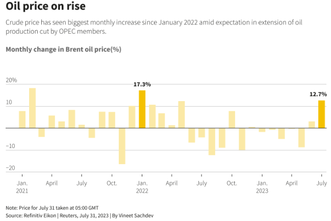 По оценкам Goldman Sachs, мировой спрос на нефть в июле вырос до рекордных 102,8 млн баррелей в сутки, и он пересмотрел прогноз спроса на 2023 год примерно на 550 000 баррелей в сутки на фоне более высоких оценок экономического роста в Индии и США, компенсировав понижение оценки потребления в Китае.