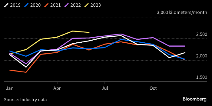 Российские нефтяные компании продолжают бурить скважины рекордными темпами несмотря на обязательства по ограничению добычи в рамках ОПЕК+, пишет Bloomberg. По оценкам агентства, в первой половине текущего года в РФ было пробурено 14,7 тыс. км скважин, что на 6,6% превысило планы и на 8,6% — аналогичный показатель 2022 г.