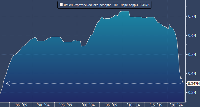 Объем нефти в Стратегического резерве США в млрд баррелей