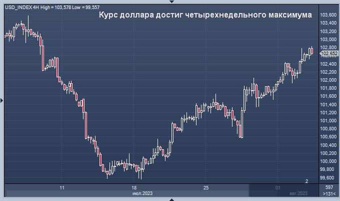 В четверг доллар достиг четырехнедельного максимума по отношению к основным валютам, проигнорировав понижение кредитного рейтинга США, которое поставило под сомнение финансовые перспективы страны, и вместо этого получил поддержку благодаря сильным данным по занятости в частном секторе.