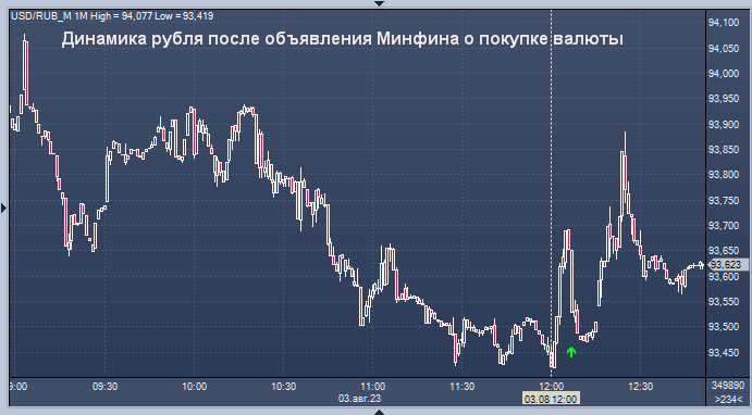 Разворот от продаж к покупкам валюты произошел по причине того, что Минфин ожидает дополнительные нефтегазовые доходы федерального бюджета в августе на сумму 73,2 млрд руб. Отклонение фактически полученных нефтегазовых доходов от ожидаемого месячного объема нефтегазовых доходов по итогам июля составило минус 32,7 млрд руб.
