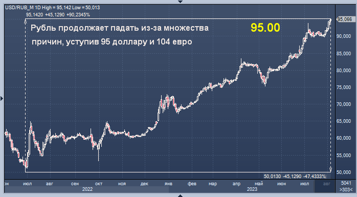 Аналитики банка "Санкт-Петербург" также связывают очередной виток ослабления рубля со вчерашним решением Минфина о начале покупок юаней и золота с 7 августа объемом в 1,8 млрд руб. в день.