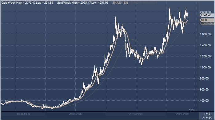 Прямо сейчас мы видим ценообразование в пределах диапазона на рынке золота. Мы твердо держимся примерно на уровне 1850, 1900, почти 1950 долларов, но нет прорыва выше. В начале года был банковский кризис, теперь он вроде сошел на нет, но золото не подешевело. Ценовой диапазон сдерживается главным образом большим количеством покупок со стороны центральных банков, что является тенденцией, которую мы наблюдаем в течение длительного времени.