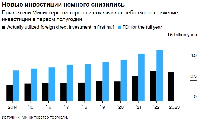 Отдельные правительственные данные показали, что в январе-июне этого года ПИИ были на 2,7% ниже, чем год назад — первое снижение за три года, согласно ранее опубликованным данным Министерства торговли, которое подсчитывает валовой приток.