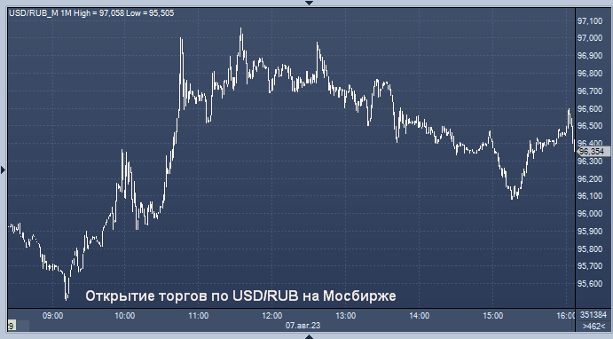 Как отмечают эксперты "Интерфакс-ЦЭА", в ходе дневных торгов понедельника рубль продолжает активное снижение в основных парах. Давление на него оказывают уменьшение предложения валюты, обусловленное, в том числе, ухудшением показателей внешнеторгового баланса, а также решение Минфина РФ перейти с 7 августа от продажи к покупке валюты в рамках бюджетного правила.