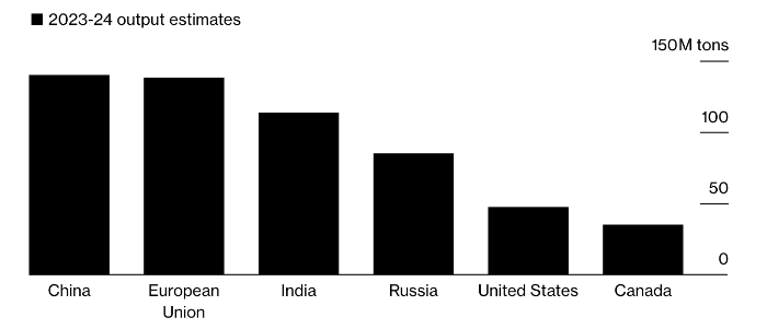 Тракторы в Северной Европе не выходят в поля из-за постоянных дождей, а качество украинской пшеницы ухудшается, потому что военные действия нарушают сельскохозяйственные процессы. Китайский урожай идет в основном на корм свиньям и домашней птице.
