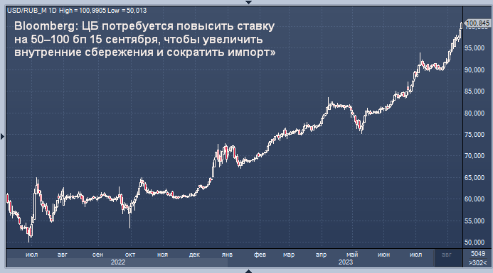 «Для стабилизации рубля, по нашим оценкам, директивная процентная ставка должна подняться ближе к 10%, а расходы федерального бюджета должны оставаться в пределах бюджетного потолка. Рубль может выиграть от более высоких цен на сырую нефть, но внутренняя денежно-кредитная политика останется более надежным якорем для валюты. Банку России потребуется повысить учетную ставку на 50–100 базисных пунктов на заседании 15 сентября, чтобы увеличить внутренние сбережения и сократить импорт».