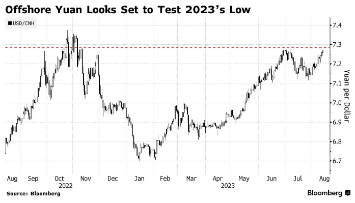 Настроения по отношению к китайской валюте также ухудшились в этом месяце. Country Garden Holdings Co., ранее крупнейший девелопер страны по объему продаж, упал на фоне опасений по поводу состояния ликвидности компании. Точно так же два клиента трастовой компании Zhongrong International Trust Co. заявили в пятницу, что фирма задержала выплаты по наступающим срокам погашения, что усилило признаки потрясений в финансовом секторе.