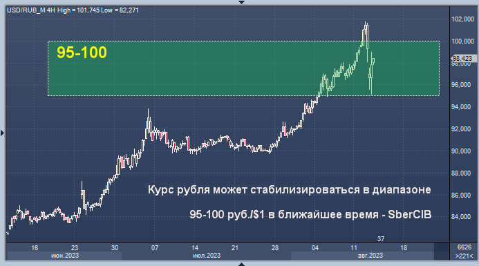 Курс рубля может стабилизироваться в диапазоне 95-100 руб./$1 в ближайшее время, но концу года вернется к уровню 85 руб./$1, написал во вторник аналитик SberCIB Investment Research Игорь Рапохин.