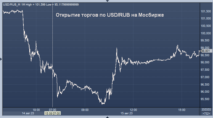 Таким образом, по официальному курсу ЦБ доллар упал к рублю на 3 рубля 61 копейку, евро упал к рублю на 4 рубля 11 копеек, а китайский юань упал к рублю на 55 копеек по сравнению с официальным курсом вторника. Объем торгов на Московской бирже к 16:02 мск вторника составил 1 499,6614 млрд рублей или 14 842,2697 млн долларов.