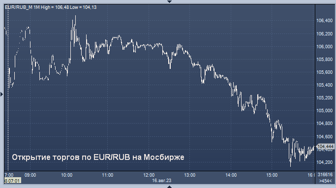 Таким образом, по официальному курсу ЦБ доллар упал к рублю на 72 копейки, евро упал к рублю на 92 копейки, а китайский юань упал к рублю на 12 копеек по сравнению с официальным курсом среды. Объем торгов на Московской бирже к 15:57 мск среды составил 1 373,8623 млрд рублей или 14 102,2208 млн долларов.