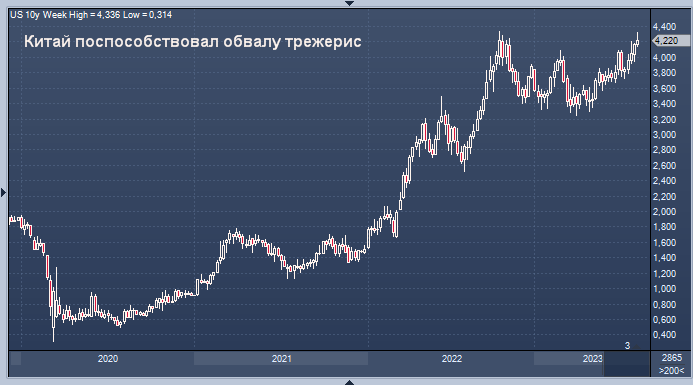 График доходности 10-летних облигаций США интервалами в 1 неделю