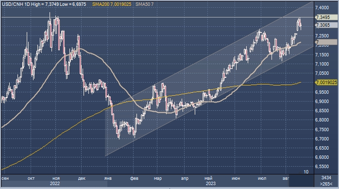 Помимо запроса о дополнительных скрытых интервенциях, на этой неделе китайские власти также попросили банки проверить, не спекулируют ли китайские корпорации на ослаблении юаня, также сообщали источники Bloomberg. Такой запрос поступил в банки, когда офшорный юань упал до 7,35 — уровня, на который регулятор обратил внимание.