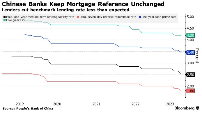 Пекин столкнулся с необходимостью снизить процентные ставки и стимулировать спрос после серии разочаровывающих экономических данных. Несмотря на снятие в этом году ограничений, связанных с пандемией, экономический рост резкой сбавил темпы из-за замедления роста рынка недвижимости, сокращения экспорта и резкого роста безработицы среди молодежи. После этого правительство на прошлой неделе объявило, что прекращает публиковать данные.