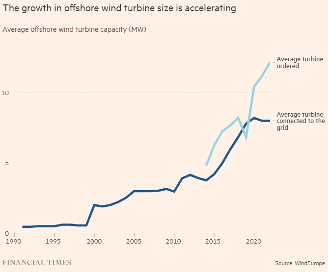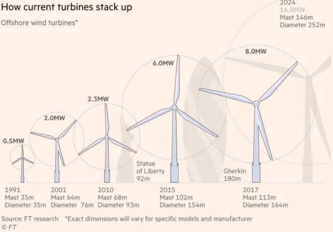 Однако быстрые темпы развития создают свои проблемы, например, для производителей судов, устанавливающих турбины, а также для других частей цепочки поставок, которым необходимо адаптироваться к огромному увеличению размеров и веса.