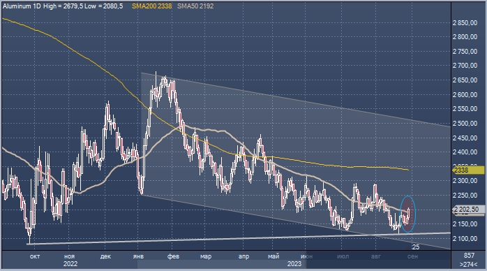 В рамках роста алюминий продолжил отскок от сформированного в августе 11-месячного минимума, достигнутого на прошлой неделе, поскольку восстановление производства в Китае и потрясения в сфере недвижимости страны повлияли на настроения на рынке. Возобновление простаивающих плавильных мощностей в провинции Юньнань стало плохой новостью для оптимистично настроенных инвесторов, но Morgan Stanley заявил, что провинция, вероятно, столкнется с серьезными проблемами в обеспечении достаточного количества гидроэлектростанций для обеспечения своей растущей алюминиевой промышленности.
