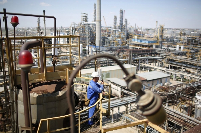 Атырауский нефтеперерабатывающий завод, управляемый национальной компанией «КазМунайГаз», в Атырау, Казахстан.Фотограф: Андрей Рудаков/Bloomberg