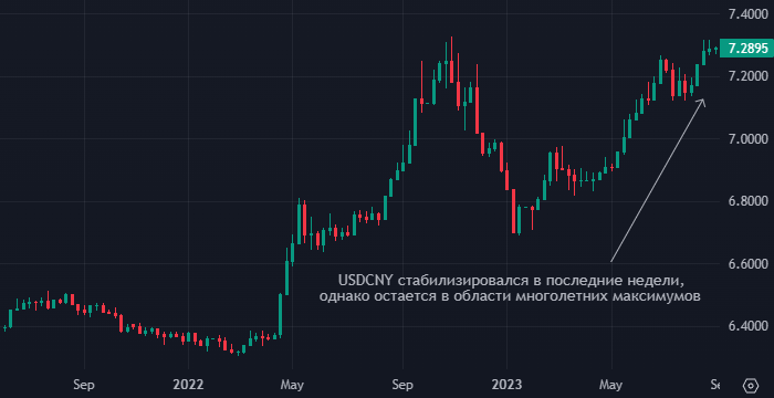 «Китай может увеличить меры поддержки своей валюты, но это в лучшем случае смягчит ее снижение, однако не развернет тренда», — полагает стратег Bloomberg Стивен Чиу.