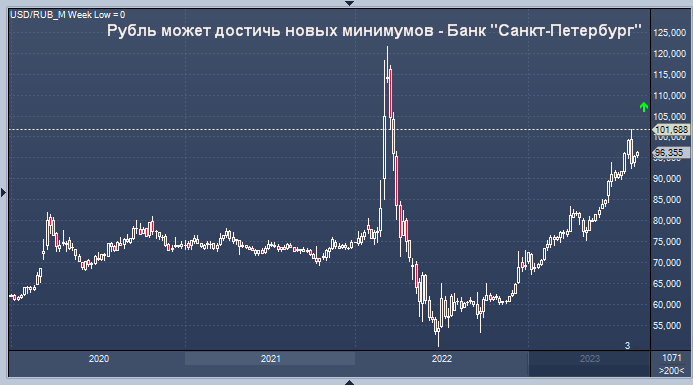 Национальная валюта может показать новые минимумы к концу года, но в краткосрочной перспективе курс, скорее всего, задержится на уровнях 96-98 руб./$1 и 104-107 руб./EUR1", - пишут аналитики банка "Санкт-Петербург".