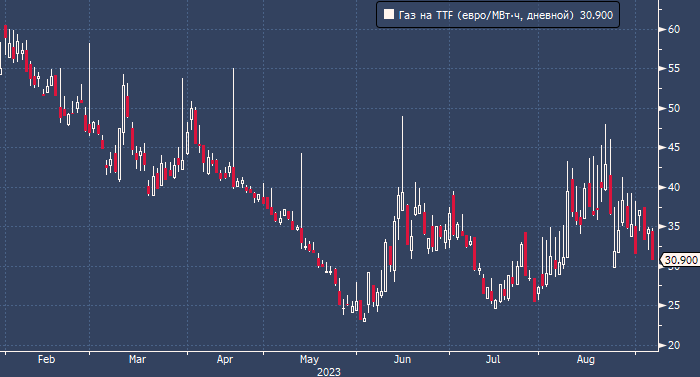В среду, 6 сентября, ближайший фьючерс на природный газ на голландской TTF снизился на 11% до двухнедельного минимума в области EUR31 за МВт·ч. Поводом для этого послужили новости о том, что Chevron и австралийские профсоюзы договорились продлить переговоры еще на один день. Вследствие этого события начало забастовки на двух австралийских СПГ-терминалах Chevron отложено до утра пятницы.