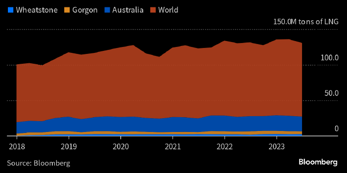 На долю двух австралийских заводов Chevron — Gorgon и Wheatstone — в прошлом году пришлось 7% мировых поставок СПГ. В августе другой австралийский экспортер СПГ — Woodside Energy Group — сумел достичь компромисса со своими рабочими и избежать забастовки на своем СПГ-терминале.