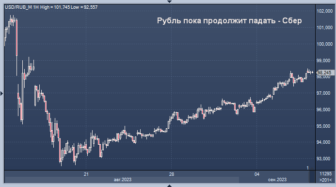 Рубль вчера упал ещё на 0,6%, до 98,4 за доллар, констатируют в Сбере. Объемы торгов на валютном рынке были по-прежнему невелики. Валютный рынок почти не отреагировал на решение Банка России увеличить продажи юаней до 21,4 млрд рублей в день в период с 14 по 22 сентября. Эксперты допускают, что ослабление рубля продолжится, пока не наступит этот период увеличения продаж юаней и пока экспортёры не нарастят продажи иностранной валюты для уплаты налогов.