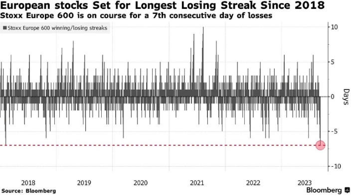 Европейские фондовые индексы падают седьмой день, приближаясь к самой продолжительной полосе неудач с 2018 года, поскольку экономические данные из Германии еще больше усилили опасения по поводу состояния крупнейшей экономики Европы.