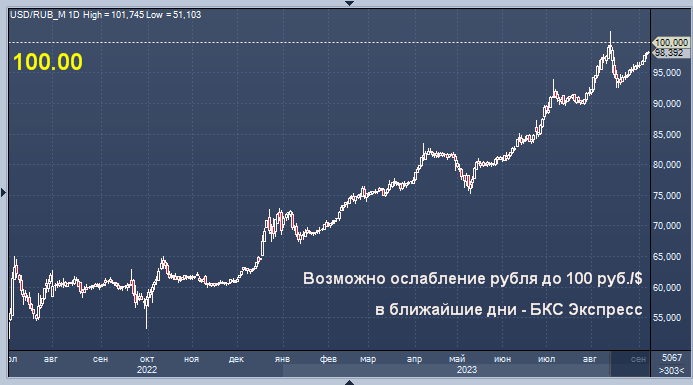 "Нельзя исключать, что курс все же коснется отметки в 100 руб./$1 в ближайшие дни. Но после этого или же при приближении к данному уровню скорее мы увидим коррекцию, подобную той, которая прошла 14-17 августа", - пишут аналитики БКС Экспресс.