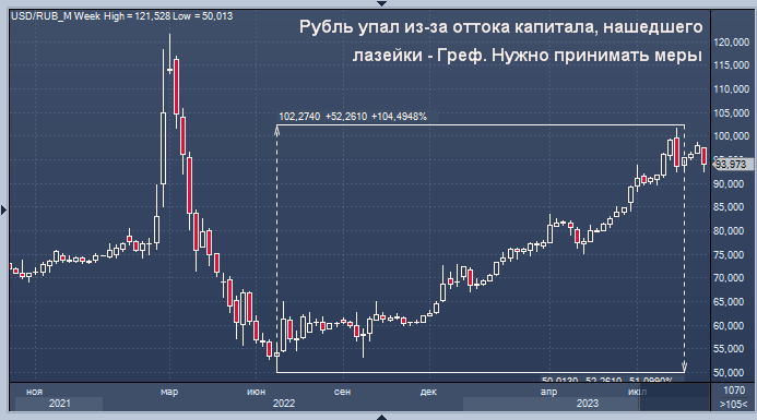 "Что Андрей Леонидович сказал в отношении утечки капитала через рублевые активы, чего раньше никогда не было, он абсолютно прав", - заявил Греф. "Надо внимательно смотреть, что с этим можно и нужно делать. Мы свои предложения отправили в этой части", - добавил глава Сбербанка. По его мнению, одной мерой эту проблему не решить, нужен комплекс действий.