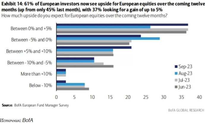 Региональный опрос BofA проводился с 1 по 7 сентября, в нем приняли участие 141 участник с активами под управлением на сумму 276 миллиардов долларов.